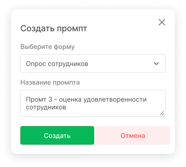 - Укажите название промпта (например, «HR-анализ кандидата») и нажмите «Создать».