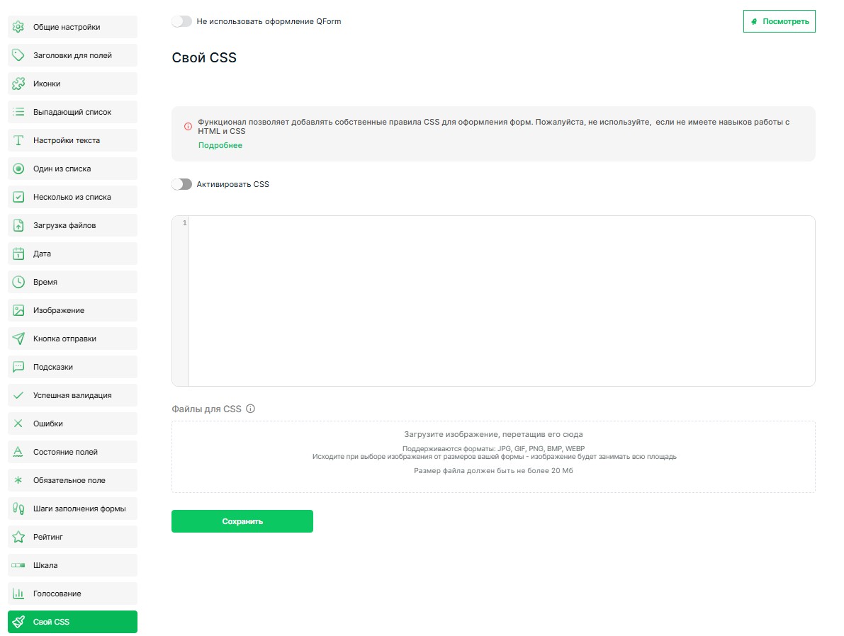 - Перейдите в раздел «Дизайн» → «Свой CSS», чтобы открыть редактор стилей.