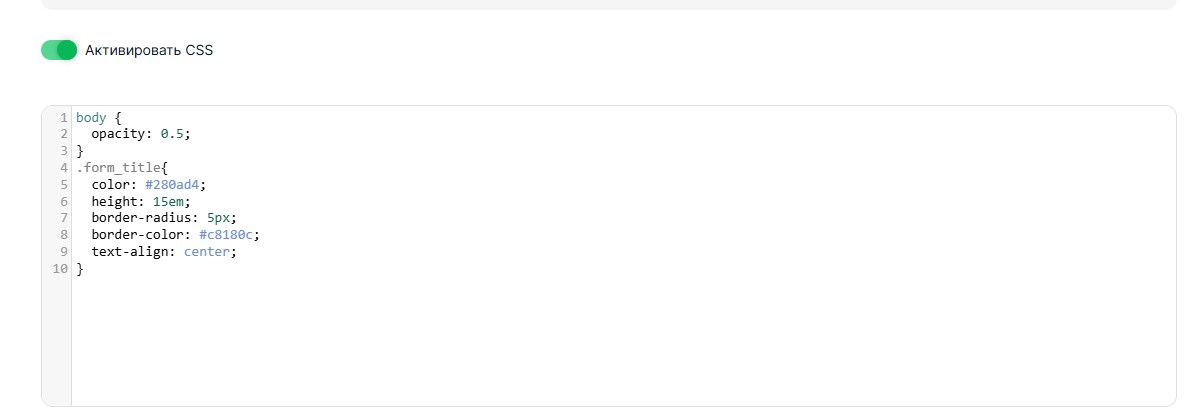 Важно! Состояния переключателя не влияет на сохранение кода. То есть при отключении пользовательские стили не применяются, но введенный код сохраняется
