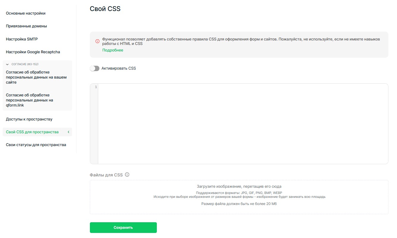 Функция «Свой CSS для пространства» позволяет: